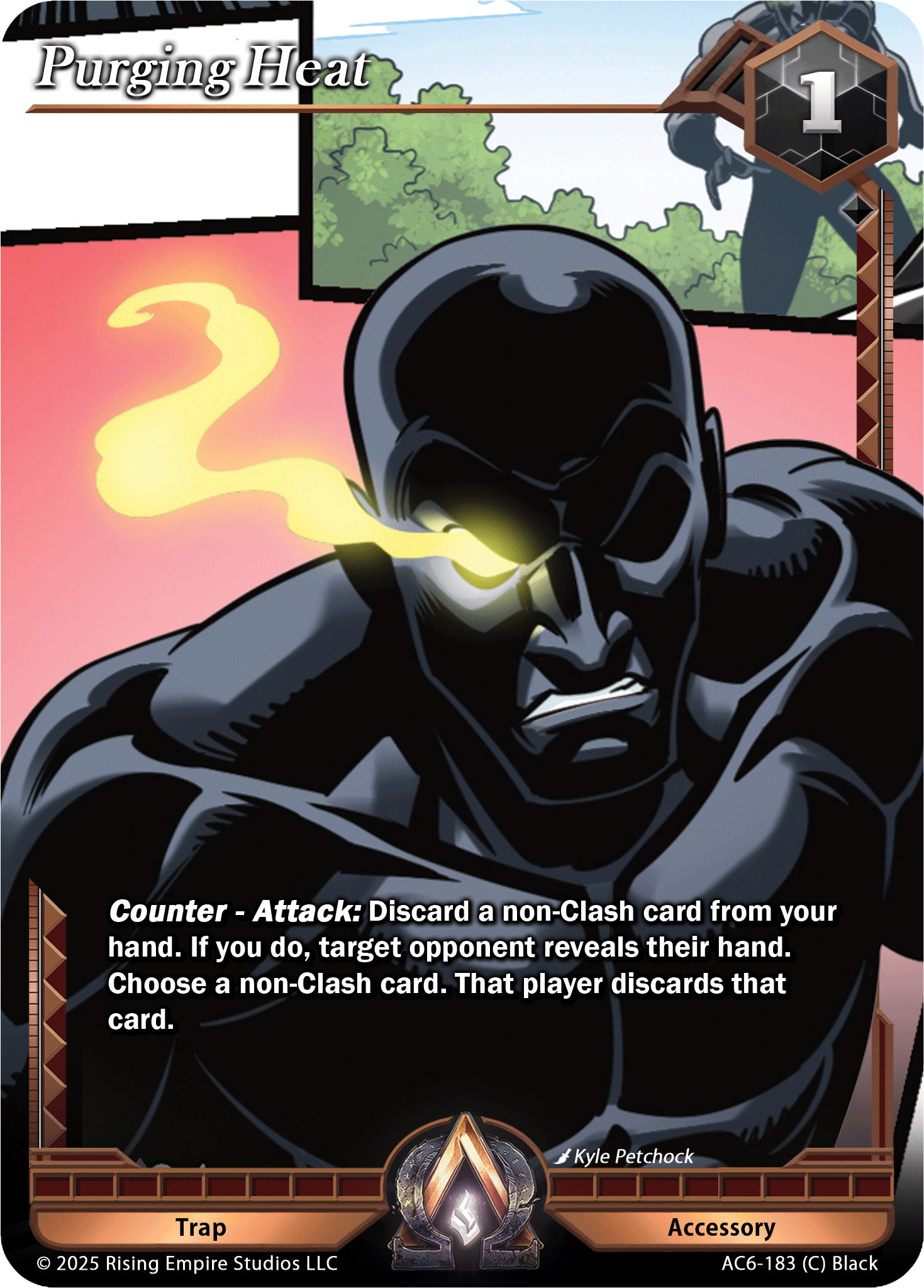 Updated Text: 25: Once per turn, during your Primary Phase, you may engage this card and send a non-token, non-Trap Accessory you control to Oblivion. If you do, deal two damage to target Contender or Clash card, then draw one card.