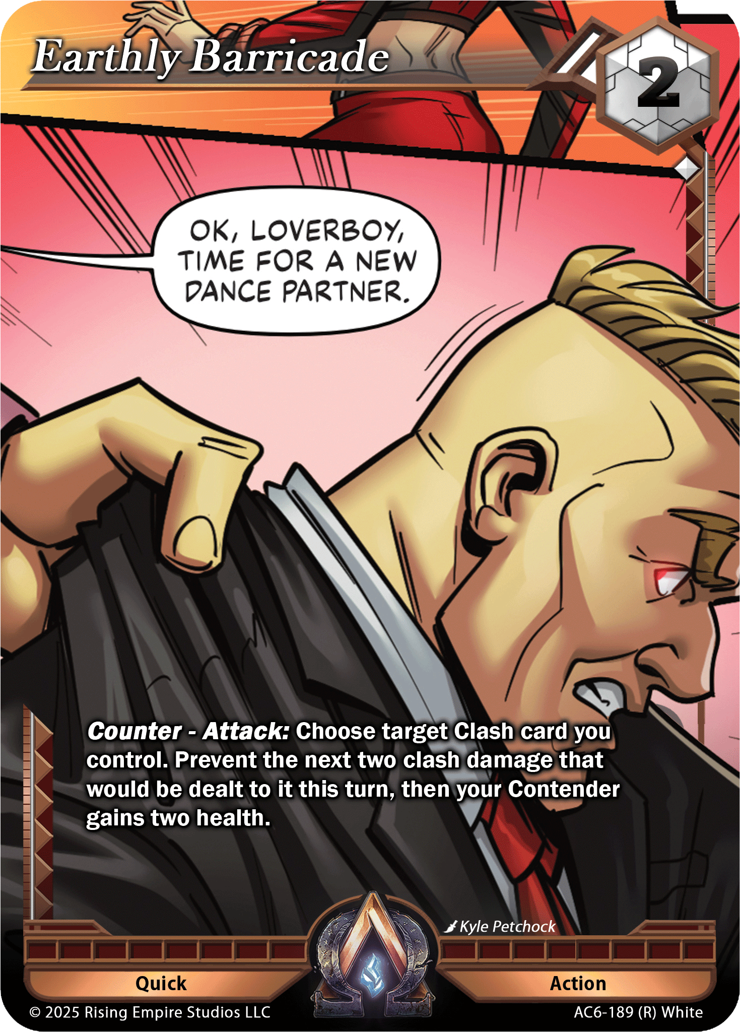 Updated Text: Counter – Attack: Choose target Clash card you control. Prevent the next two clash damage that would be dealt to it this turn, then your Contender gains two health.