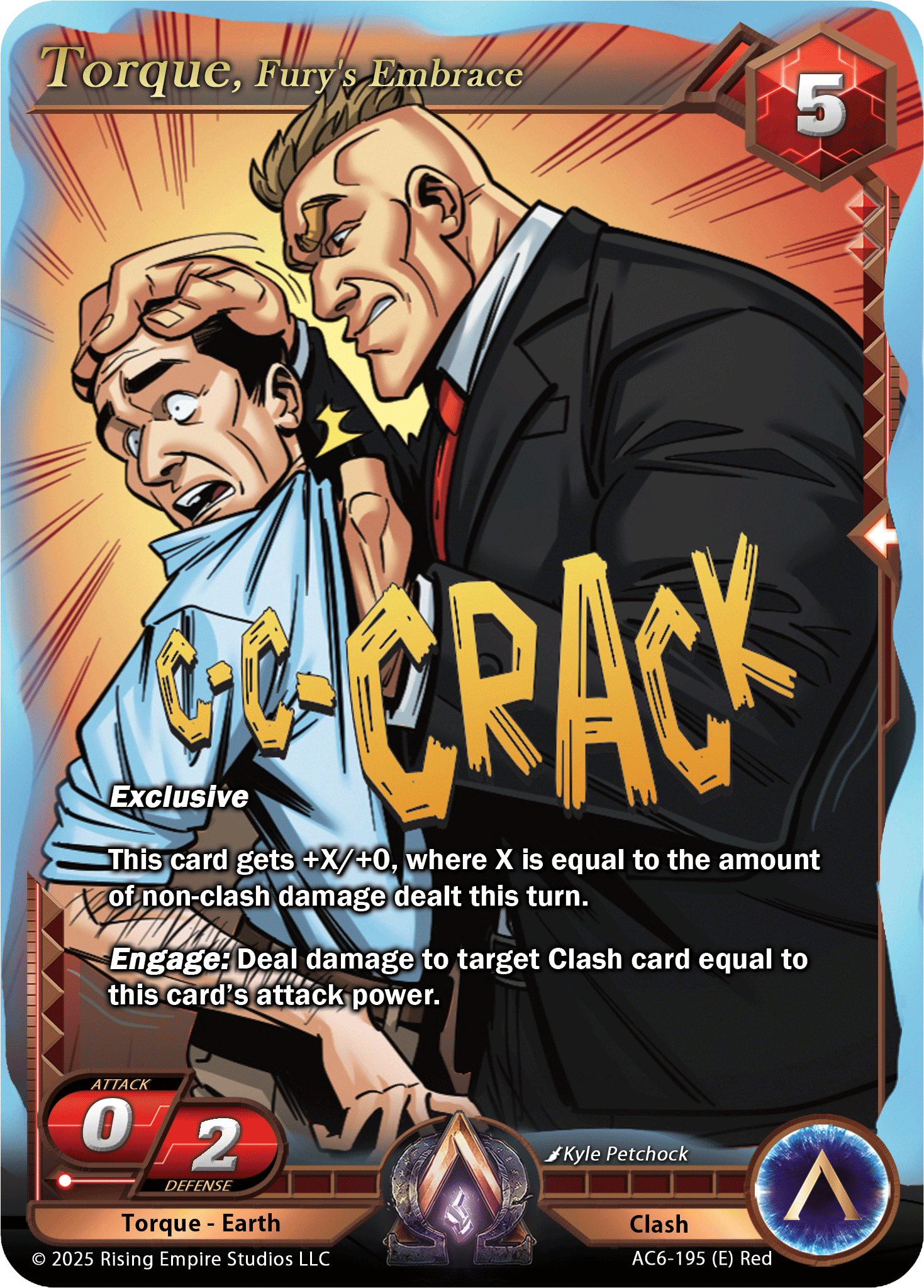 Updated Text: Exclusive. This card gets +X/+0, where X is equal to the amount of non-clash damage dealt this turn. Once per turn, during your Primary Phase, you may engage this card. If you do, deal damage to target Clash card equal to this card’s attack power.